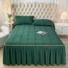 3-teiliges Luxus-Bettwäsche-Set, gesteppter Bettrand mit 2 Kissenbezügen, dicker warmer rutschfester Matratzenschoner, einfarbiges Bettlaken und Bettbezug