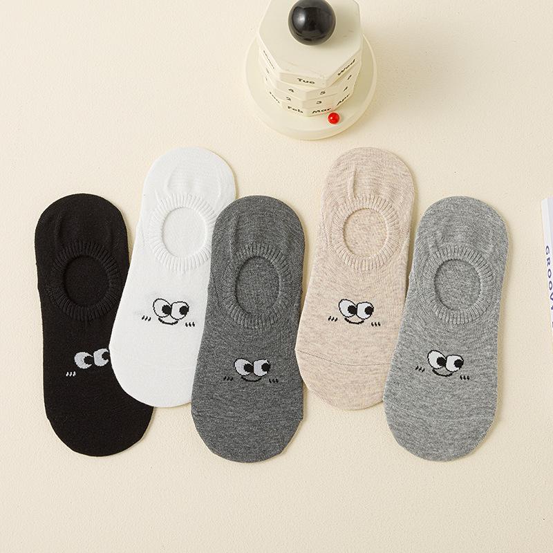 Damen Bootssocken, Dünne Baumwollsocken für Frühling und Sommer, die nicht verrutschen, Silikon Anti-Rutsch Sommer Unsichtbare Socken, Eye Kurze Socken