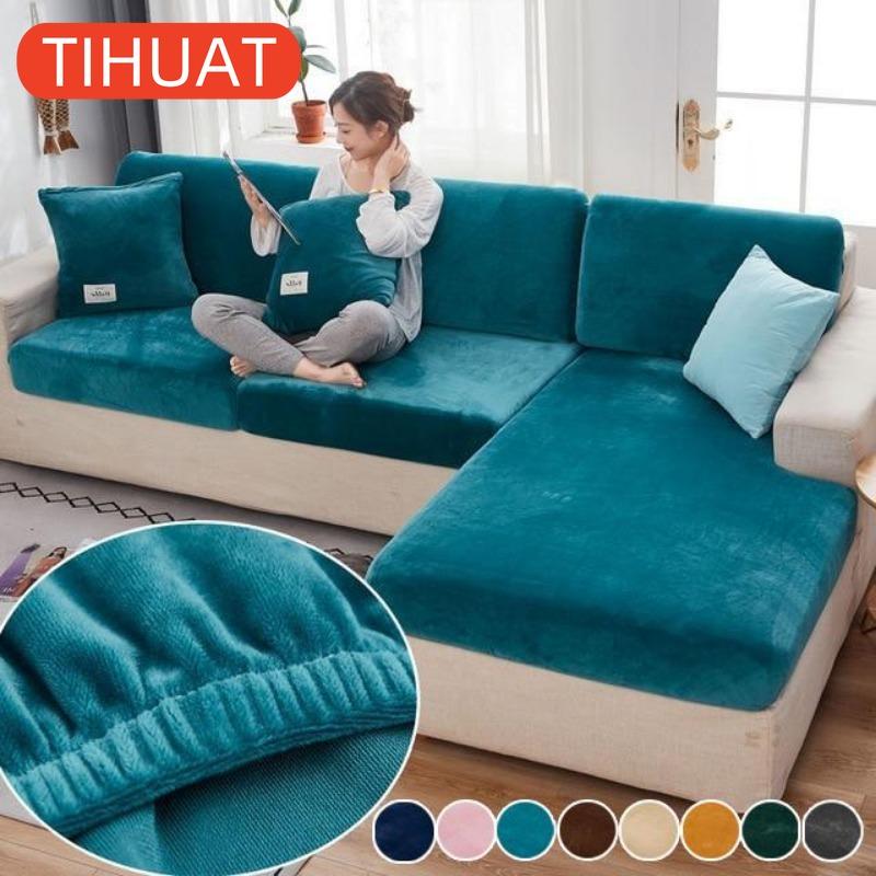 Samt Sofabezug Kissenbezug Dick Jacquard Einfarbig Weich Elastisch Sofahusse Möbelschutz
