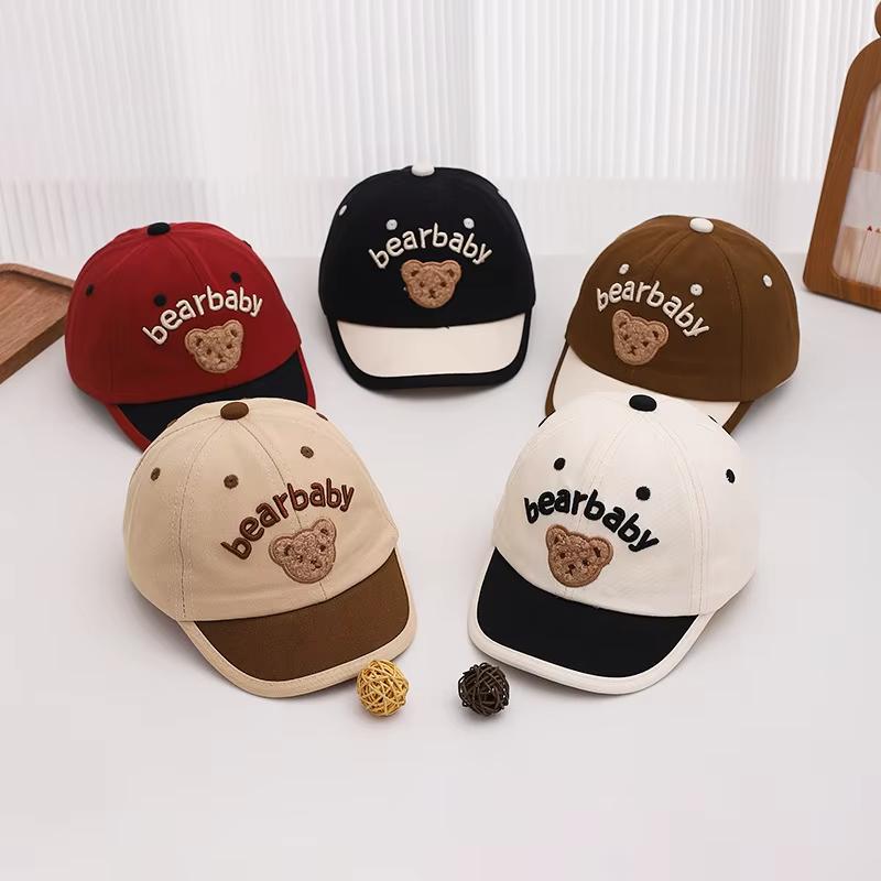 Niedliche Patchwork Baby Entenzungenkappe Cartoon Bär Lässige Baseballkappe Verstellbar Kinder Kleinkind Kurzer Schirm Sonnenhut