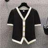 Französische Büroangestellte Slim Duftendes Sommerhemd Neu V-Ausschnitt Strickjacke Kurzarm Damen Knopf Einfach Schick Mode Weiße Oberteile
