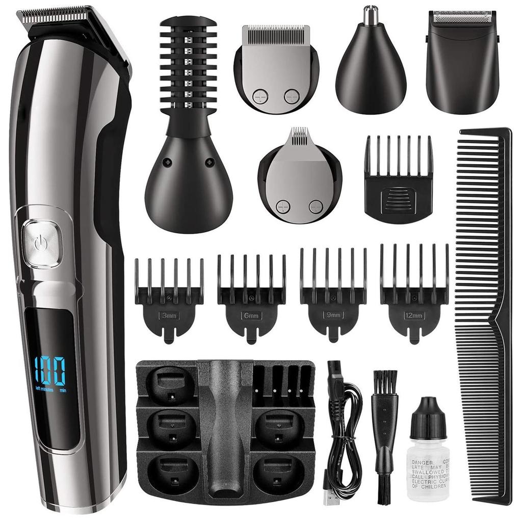 All-in-One Grooming Essential – This kit combines 3 core tools: an LCD digital hair trimmer (for head/beard/mustache), a waterproof shaver (for face/body), and a precision nose/ear hair trimmer. Perfect for daily grooming needs, from shaping beards to trimming stray hairs.