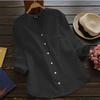 Dieses bequeme und stilvolle Langarm-Oberteil ist aus einer Mischung aus weicher Baumwolle und Leinen gefertigt, was sowohl Atmungsaktivität als auch Langlebigkeit gewährleistet.. Entworfen mit einer lockeren Passform, bietet es einen entspannten und dennoch schicken Look, der für verschiedene Anlässe geeignet ist.. Das Oberteil hat einen Stehkragen und ist mit auffälligen Patchwork- und Steppverzierungen versehen, die seinem einfarbigen Muster eine einzigartige Note verleihen.. Ideal für Übergrößenfiguren, vereint es klassische Schlichtheit mit eleganten Details und macht es zu einer vielseitigen Ergänzung für Ihre Garderobe.