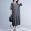 Kleid für Damen Baumwolle Übergröße Locker Stretch Lässig Einfarbig Weich Langarmkleider