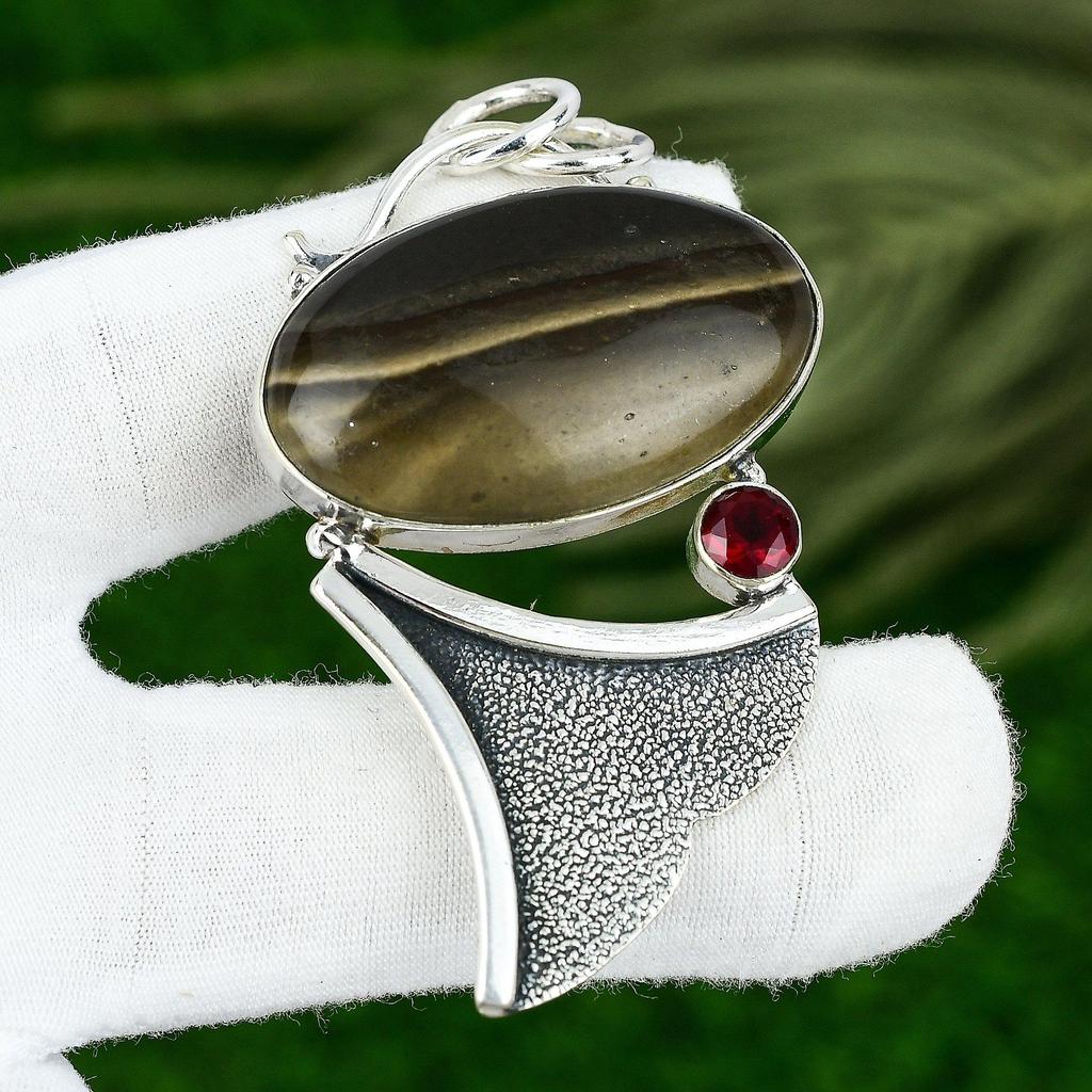 Natürlicher Polychromer Jaspis Mosambik Granat 925 Sterlingsilber Hochzeit Anhänger