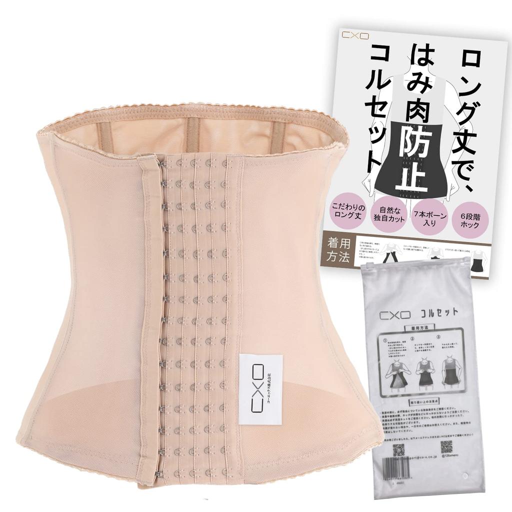 CxO Postpartum Body Made in Waist Cincher with Comfortable External Tag Women's Shaper, 7-Bone, 6-Hook Corset, Japan, (Beige, L)