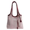 Pendler große Kapazität gestreifte Canvas-Tasche Damen neue modische vielseitige Schultertasche Arbeit Tragetasche