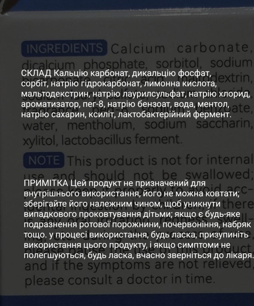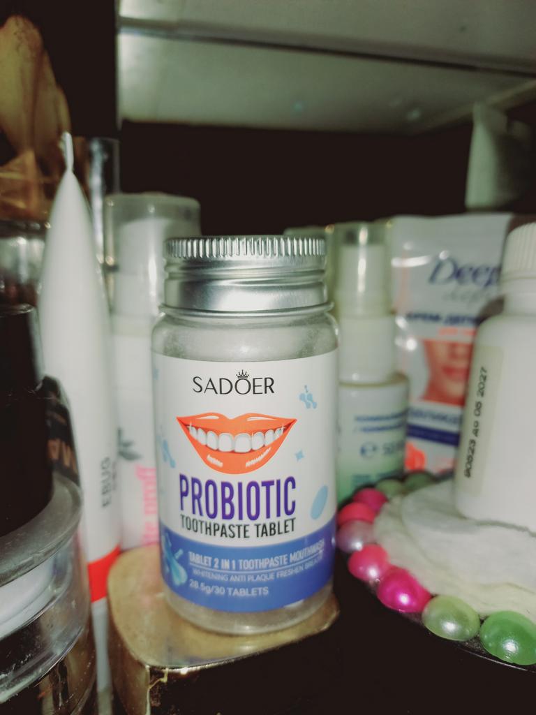 Zahnpasta in Tablettenform, ein interessantes Format von Zahnpasta. Vor Gebrauch muss die Tablette gekaut werden. Die Tabletten sind weiß, schäumen gut, erfrischen den Atem und reinigen die Zähne effektiv. Ich empfehle sie.