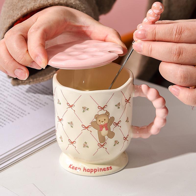 Farbe: 1041-028 Niedlicher Bärenbecher (Plaid) mit Deckel Löffel, 1041-029 Niedlicher Bärenbecher (Lovely Bear) mit Deckel Löffel, 1041-030 Niedlicher Bärenbecher (Malaienbär) mit Deckel Löffel, 1041-031 Niedlicher Bärenbecher (Girlande) mit Deckellöffel