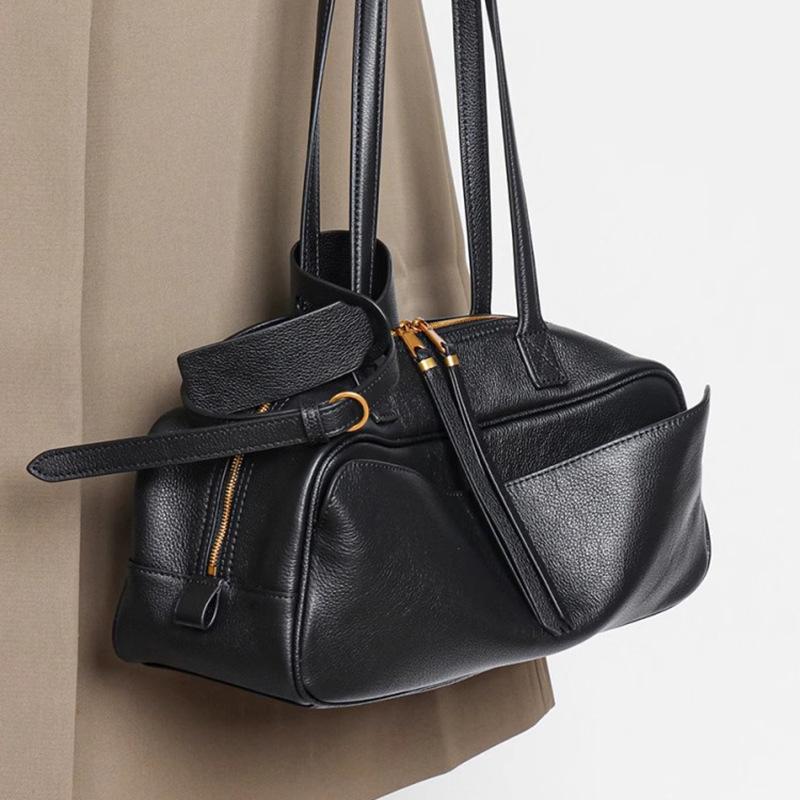 Bowlingtasche, Einfache und Modische Damen Umhängetasche aus Echtem Leder, Baguette Tasche