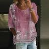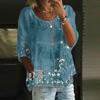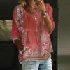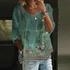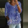 Leinenhemden für Damen 3/4-Ärmel Knopfleiste O-Ausschnitt Sommeroberteile Schick Lässig Niedliche Hemden