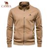 Camel Bestickte Herbst-Winter-Neuheit für Herren mit Stehkragen, Reißverschluss, langen Ärmeln, sportliche Kontrastfarbe, lässige Strickjacke