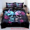 3D-gedrucktes schwarzes Totenkopf-Skelett-Bettwäscheset Bunte Vintage-Rosen-Bettbezug Luxuriös Weich Zuhause Hippie-Stil Bettbezugsets