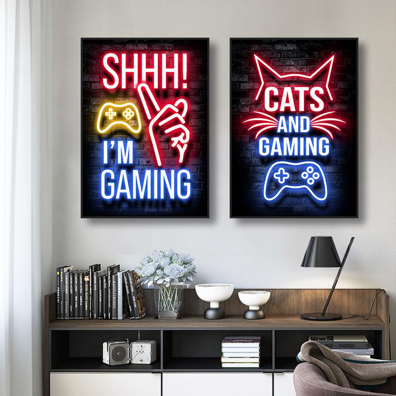 Neon Gaming Gamer Wandkunst Poster Drucke Gamer Leinwandmalerei Leinwandbild für Kinder Jungenzimmer Dekoration Spielzimmer Cuadros