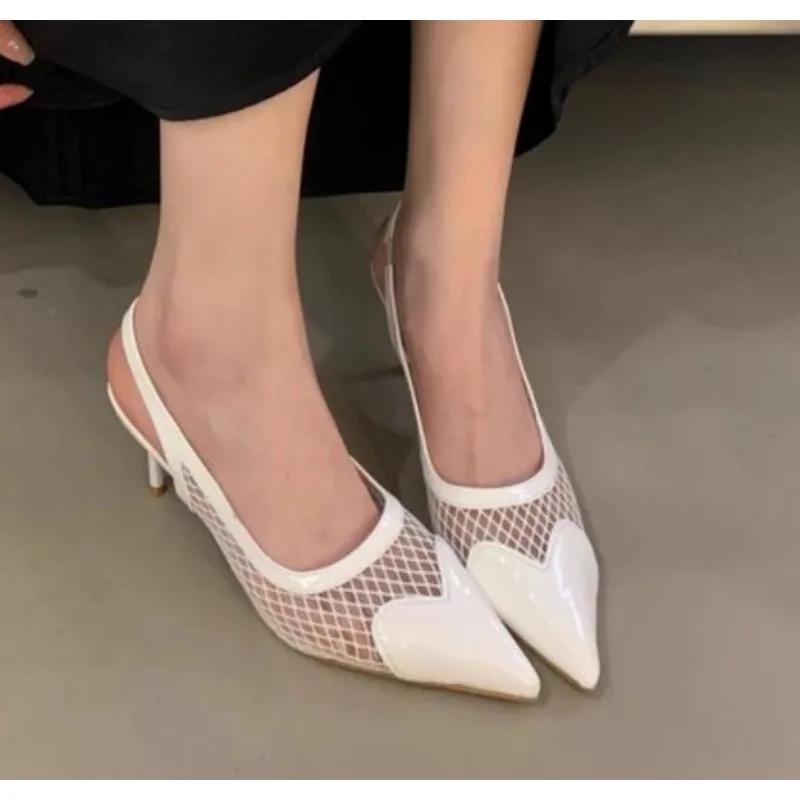 Sommer Neue Mode Herzförmige Spitze Zehen Hohe Absätze Nach Leerem Netz Baotou Sandalen Damen Party Pumps