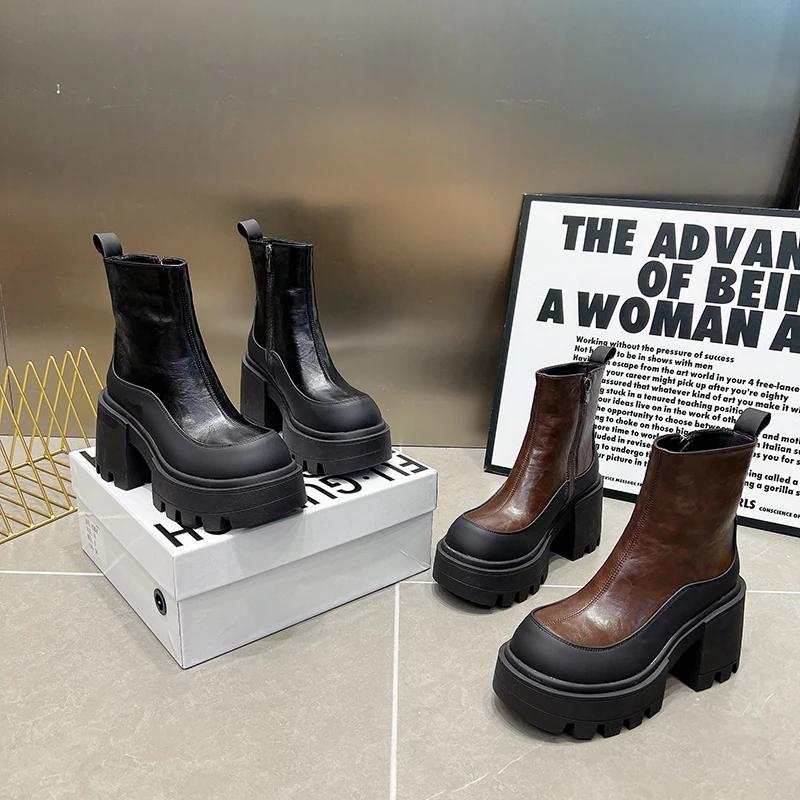 Vintage Punk Style Women Ankle Boots Fashion Modern Short Booties Ladies Elegant Thick Heels Botas Mujer