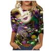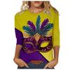 Long Sleeved Glamorous Mask Patterned Top Carnival Themed Printed Women's T-shirts