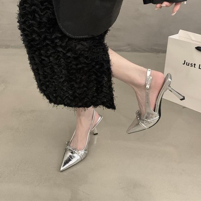 Baotou High-Heel-Sandalen flach Frühling neu hinten leer dünner Absatz Temperament spitz Einzelne Schuhe Damenschuhe