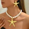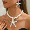 2025 Neues Damen Ohrring Halsketten Set Personalisiertes Seestern String Perlen Design Lange Schlüsselbeinkette Vielseitige Ohrringe