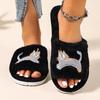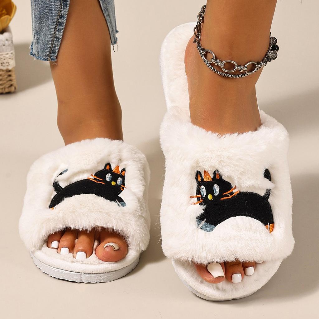 Niedliche Zehenfreie Baumwoll-Hausschuhe mit Katzenmotiv, Verdickte Plüsch-Hausschuhe für Damen, Rutschfeste Hausschuhe für drinnen