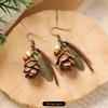 Retro niche literary earrings, natural plant fruits, wooden dried fruits, long fringed women's earrings