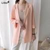 Notched Dignified Solid Intellectual Loose Spring Summer Office Lady Fashion Formal Casual Temperament Women's