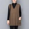 Frühling Herbst Damen Kleidung Ärmelloser Pullover Mantel V-Ausschnitt Taschen Vintage Koreanisch Lang Mode Lässig Locker Gestrickte Weste Tops