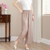 Simplicity Casual Summer Pants Women's Solid Elastic Waist Pockets Thin Style Elegant High Waist Loose Wide Leg Cropped Trousers