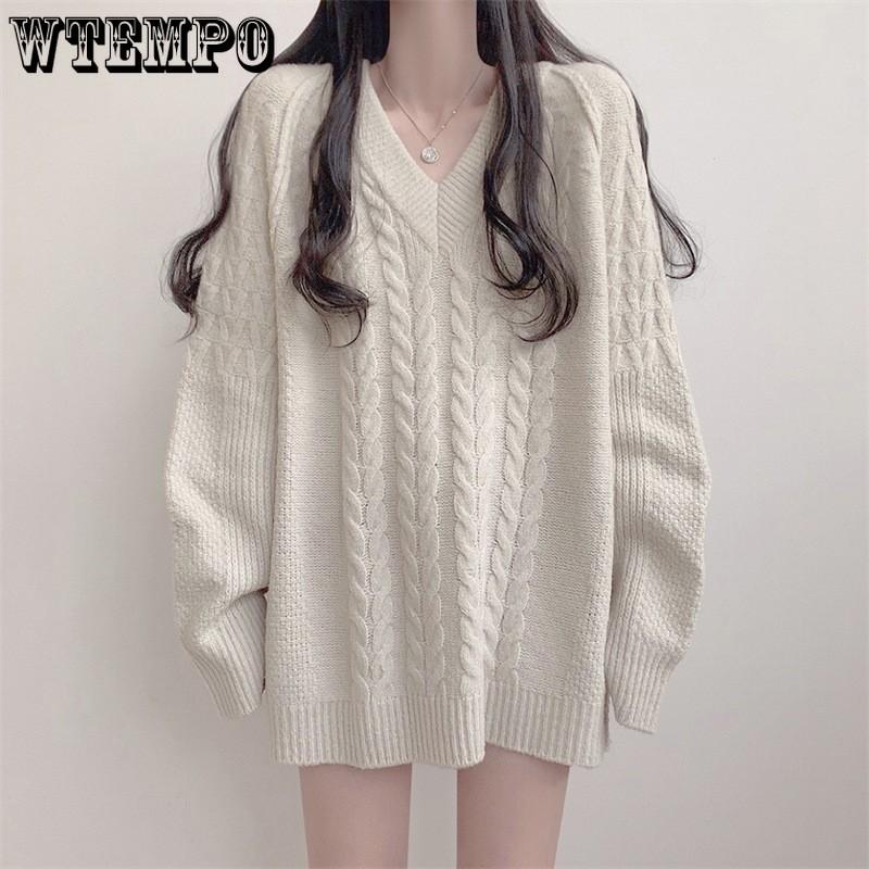 Herbst/Winter V-Ausschnitt Pullover Damen Mittellang Einfarbig Strickpullover