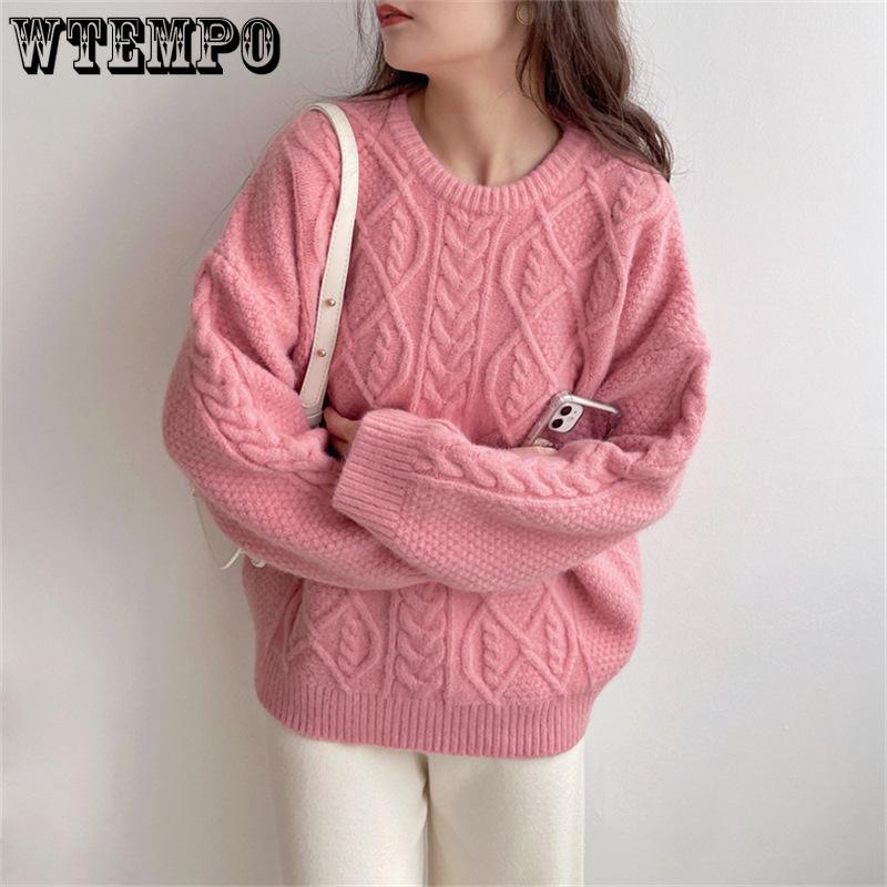 Damenpullover Herbst und Winter Rundhals Locker Langärmliger Pullover Strickoberteil