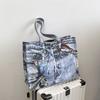 Frühling und Sommer neue Retro Denim Kontrastfarbe tragbare Umhängetasche große Kapazität Tragetasche Einkaufstasche Damentasche