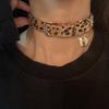 Shi Meisha: Süßes und cooles Leopardenmuster Lederseil Halsband Nischenpersönlichkeit Vielseitiges Halsband Spice Girl Gothic Dessous
