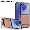 KEYSION Luxus PU Leder Magnetische Hülle für MagSafe für Samsung Galaxy Z Flip 7 5G 7 SE Ständer Kabelloses Laden Handyhülle