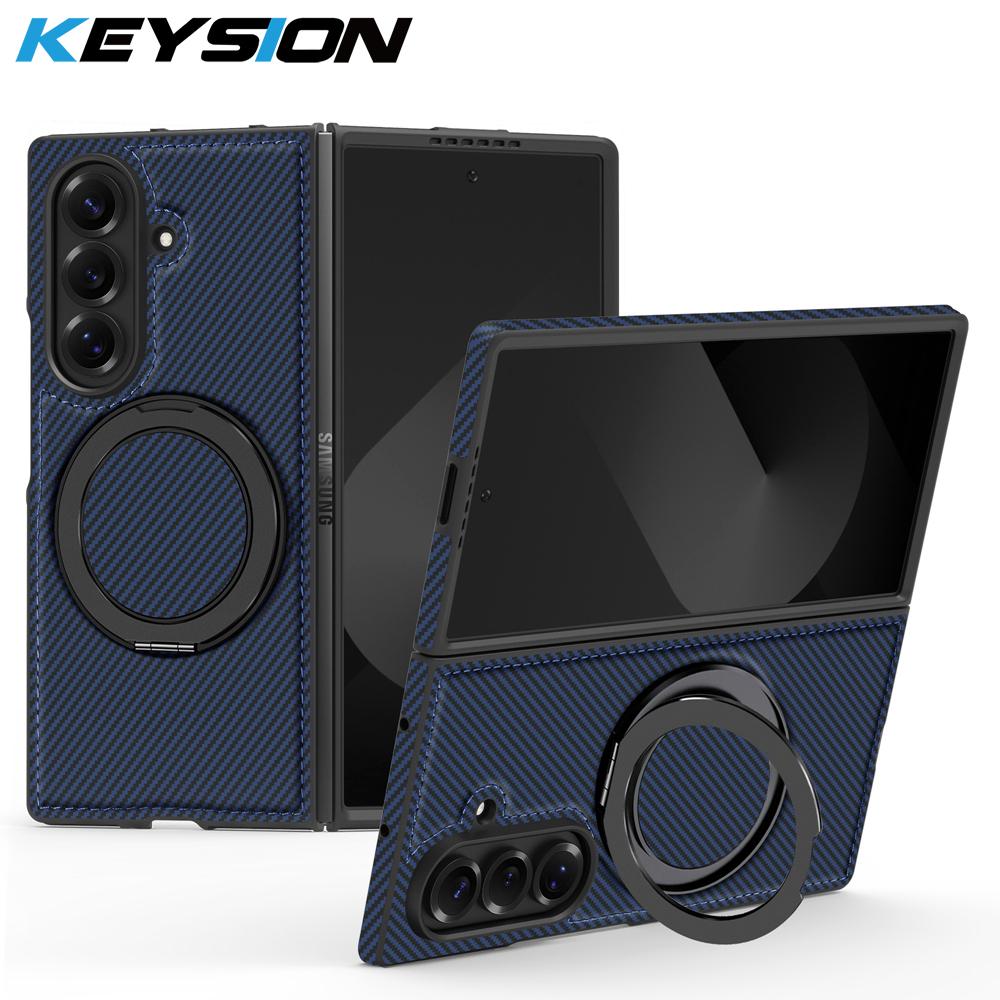 KEYSION Kevlar Carbon Fiber Texture Case for MagSafe for Samsung Galaxy Z Fold 7 6 5 4 3 360° Rotating Magnetic Ring Stand Phone Cover