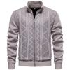 Herrenpullover Herbst und Winter Stehkragen Dick Warm Plus Samt Strickjacke Jacquard Freizeitjacke