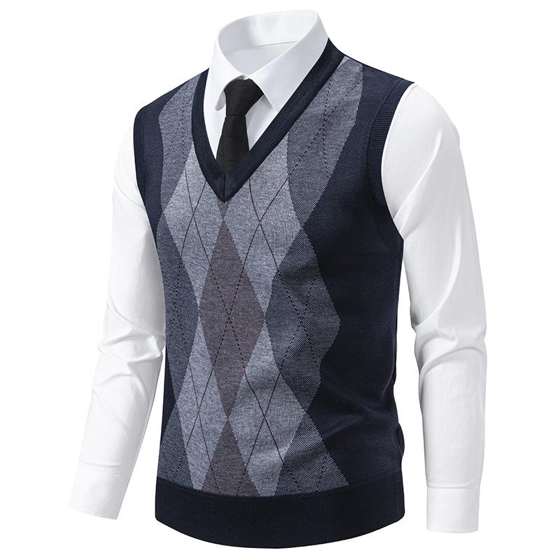 Karierte Strickweste für Herren mit Herbst- und Winterwarmer Slim-Strickwestenjacke für Herren
