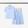 ZANZEA Women Short Sleeve Blouse and Skirts Summer Stripe Two Piece Suit Sets