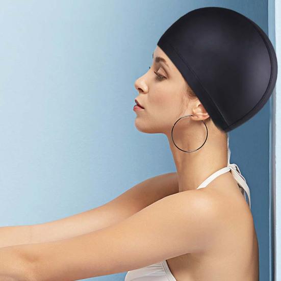 Bademütze, extra weich, hochelastisch, wasserdicht, einfarbig, rutschfestes Design, Kunstleder, Ohrenschutz, Pool-Schwimmmütze, Beanie-Kappen für Damen