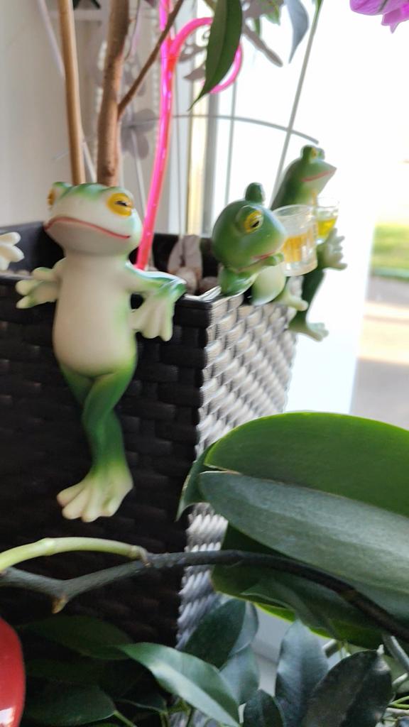 🌺Dekoration für einen Blumentopf. 🌺Geeignet für alle Töpfe mit Wänden von nicht mehr als 1 cm. 🌺Figurengröße: 10*10 cm 🌺Lässt sich leicht am Topf befestigen. Das Glas des Frosches ist separat, daher ist es besser, es festzukleben) 🌺 Der Originaldekor ist aus Polystone gefertigt - einem Material, das eine geringe Wasseraufnahme aufweist, nicht durch Frost bricht und leicht zu reinigen ist. 🌺Schöner und hochwertiger Dekor, der Kauf hat mich sehr gefreut 👍😘😘😘