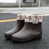 Rain shoes women wear short tube flat non-slip water shoes flat rain boots warm short rubber shoes