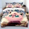 Pokemon Pummeluff 3-teiliges Bettwäsche-Set Kissenbezug Bettdecke für Erwachsene Schlafzimmer-Bettwäsche-Set Bettbezug Bettdecke Heimdekoration Steppdecke