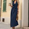ZANZEA Damen V-Ausschnitt Sommer Casual Ärmellos Langes Kleid