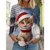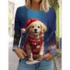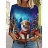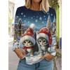 Weihnachten Damen Langarm T-Shirt Lässig Mode Weihnachten Niedliche Katze&Hund Feiertagsgeschenke Oberteile Harajuku Tier Damenbekleidung
