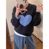 Kontrastfarbiger Pullover für Damen Rundhals Locker Strickoberteil