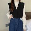 Damen Süßes Rautenmuster Gestrickte Weste Cardigan Mantel Einfarbig Spitze Pulloverweste Cardigan für Oberbekleidung