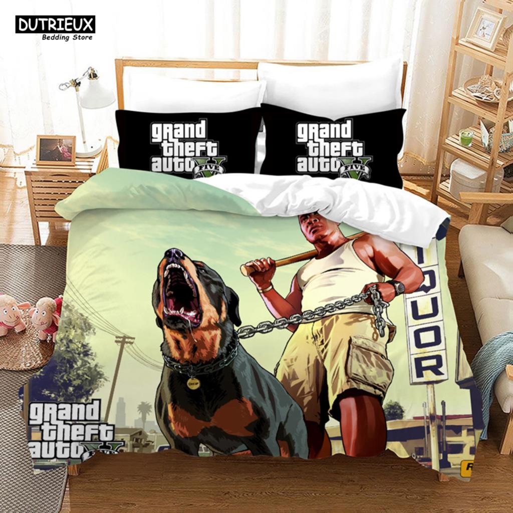 GTA V Game - Themed Cartoon Bedding Set with Duvet Cover and Pillowcase, Including Comforter