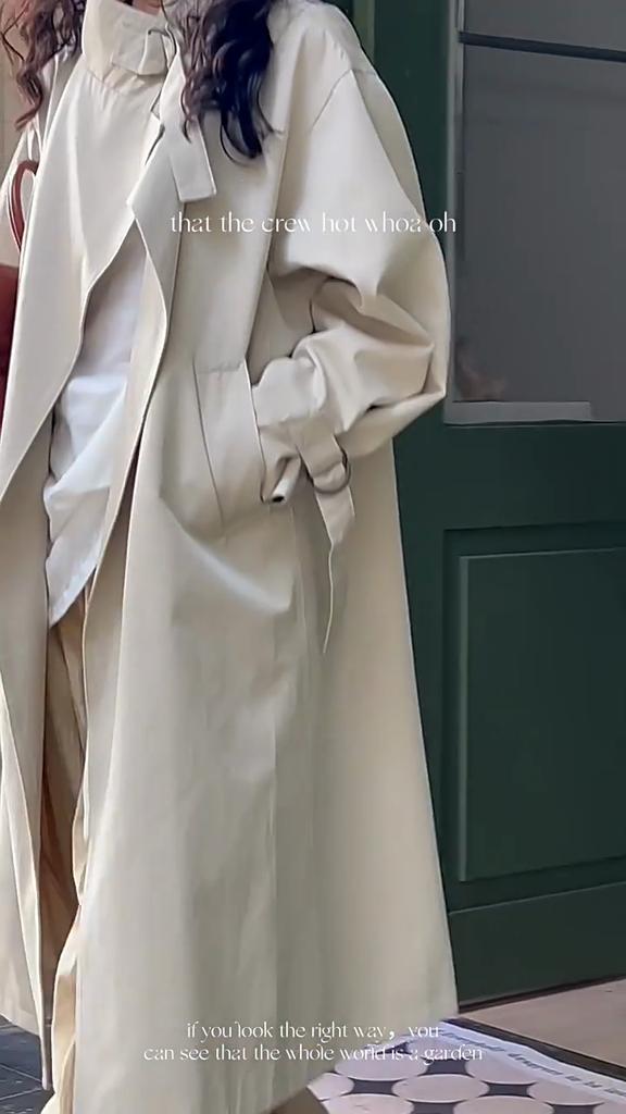 Johnature Herbst Britischer Minimalistischer Trenchcoat Damen Modisch Lässig Lang Vielseitiger Trench