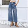 Damen Elastischer Bund Lockerer Denim Weitbein Hose