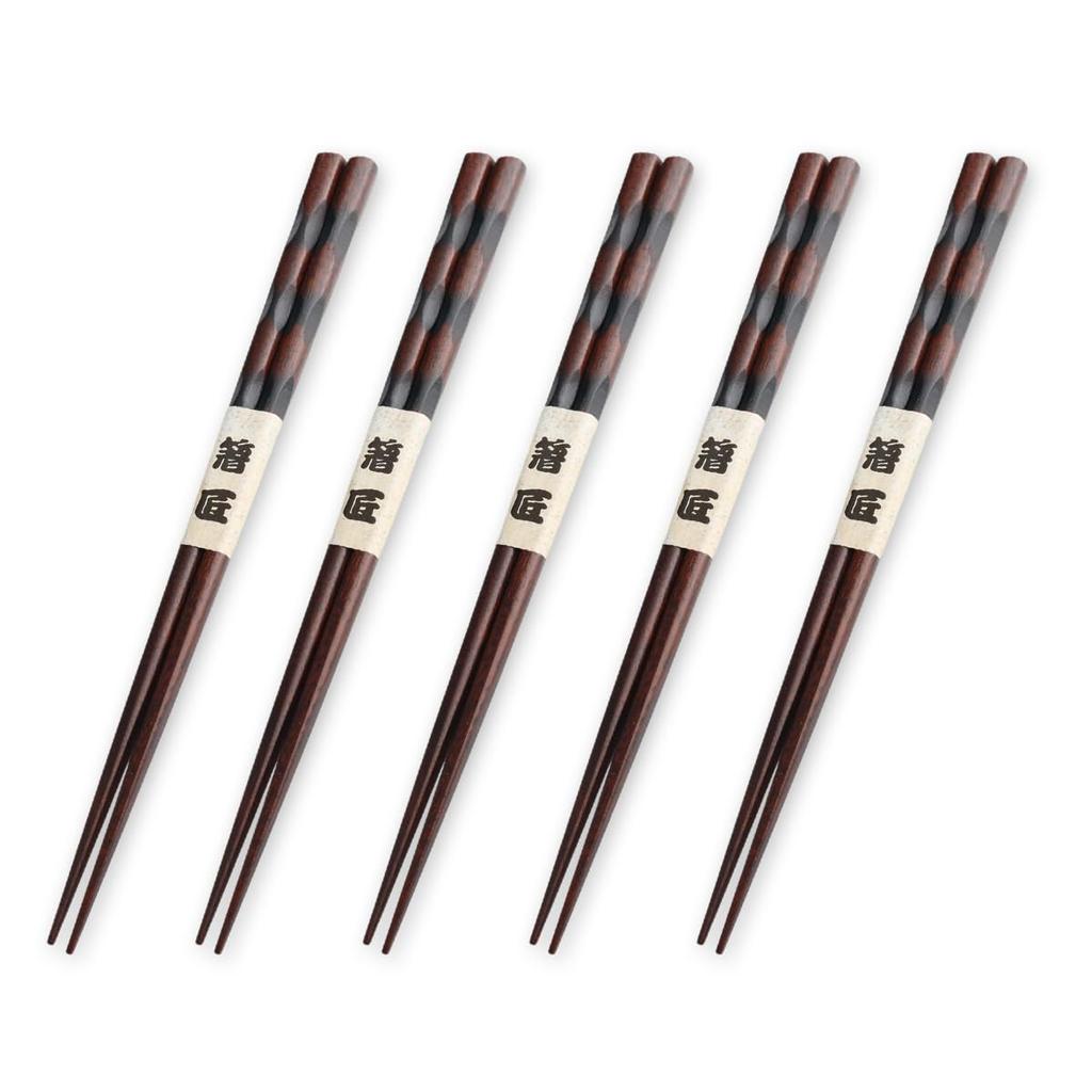 Hölzernes Set von J-kitchens Essstäbchen mit Meißelschnitzerei, aktuelles Modell, Schwarz, 5, 23cm,
