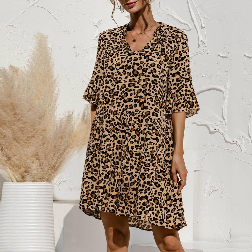 Damenmode V-Ausschnitt Halbarm Sexy Leopardenmuster Kleid